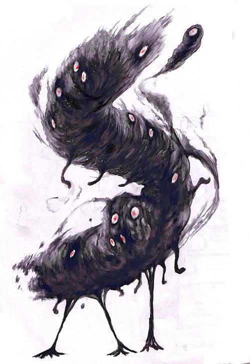 눈처럼 보이는 기관이 달려있긴 하지만, 그들에게는 시각기관이 존재하지 않습니다. 애초에 신체의 일부가 암흑물질로 구성된 이상 전자기파와 상호작용하는 것 자체가 불가능하기 때문입니다. 대신 이들은 예민한 촉각으로 물체를 감지하며, 특히 대기의 흐름에 매우 민감하게 반응합니다.